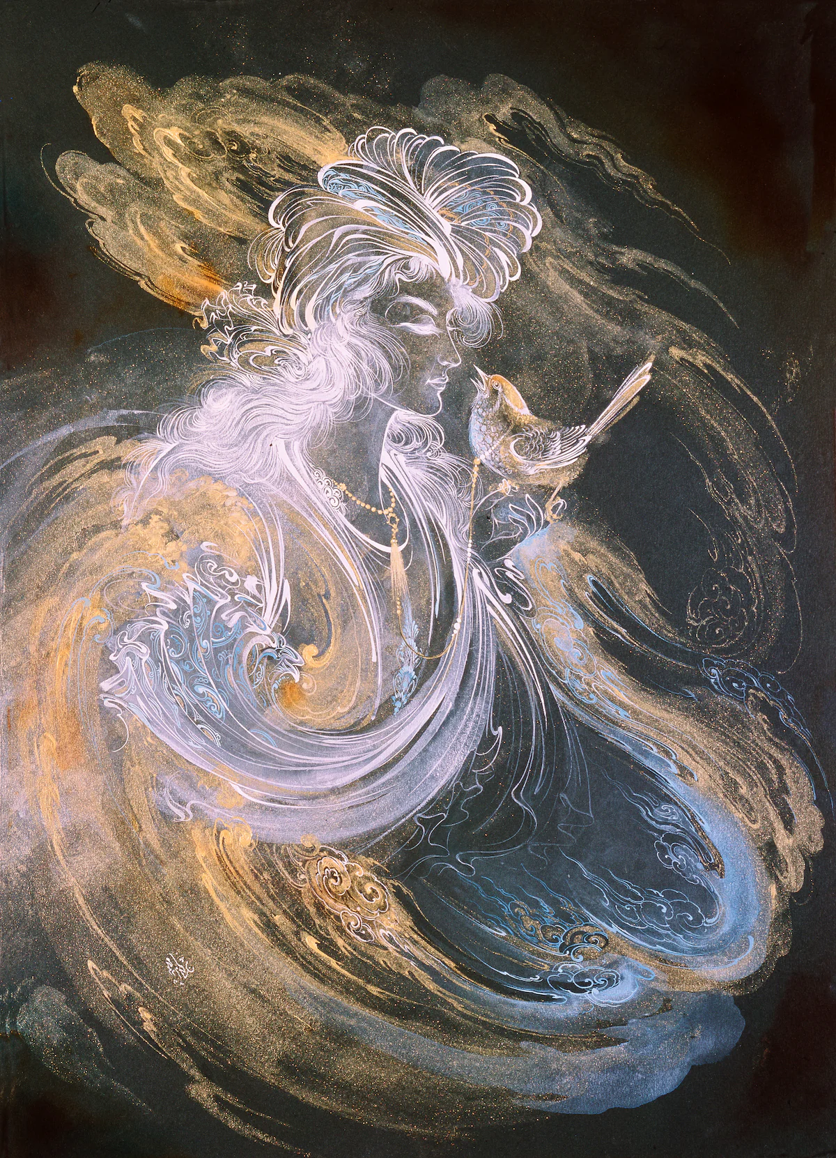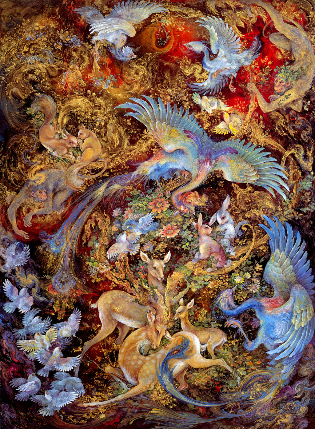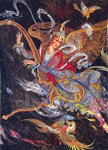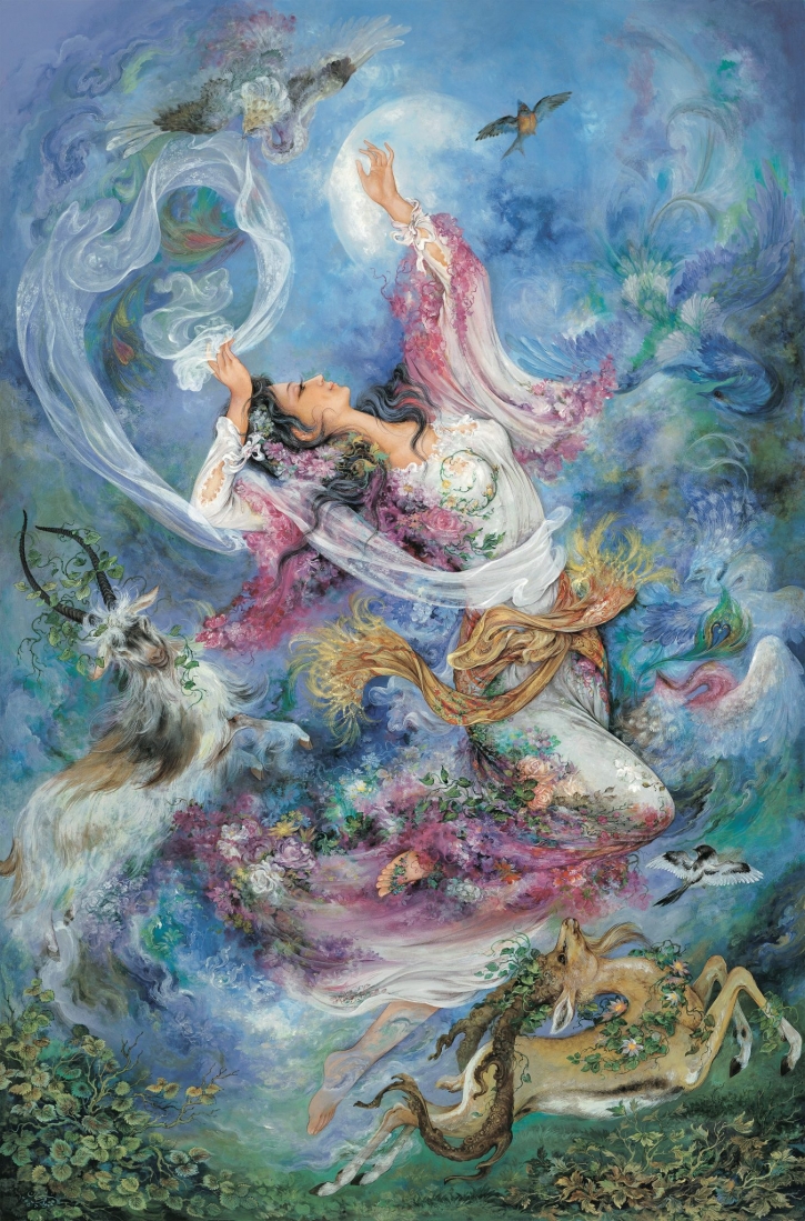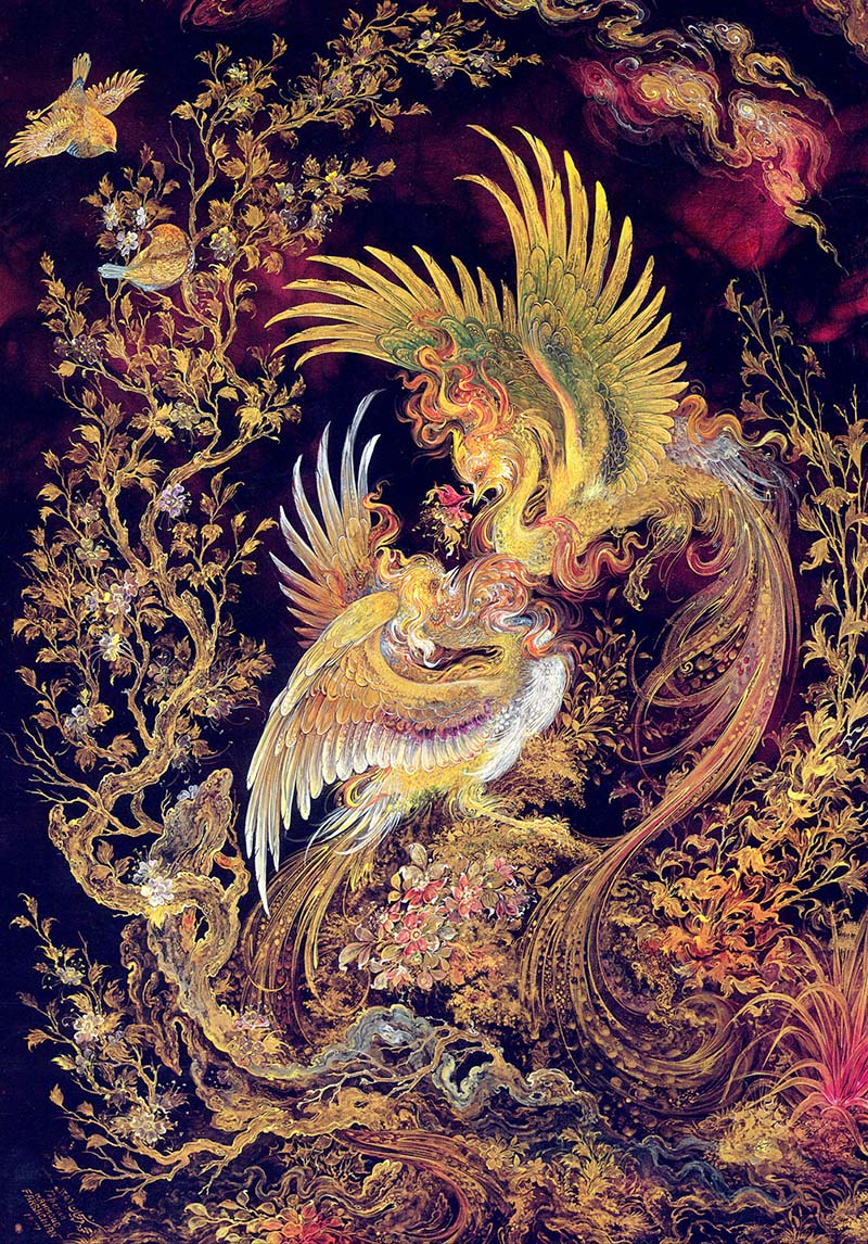 Birds are an element Farshchian often uses in his pieces, relating to his childhood memories